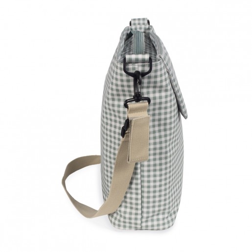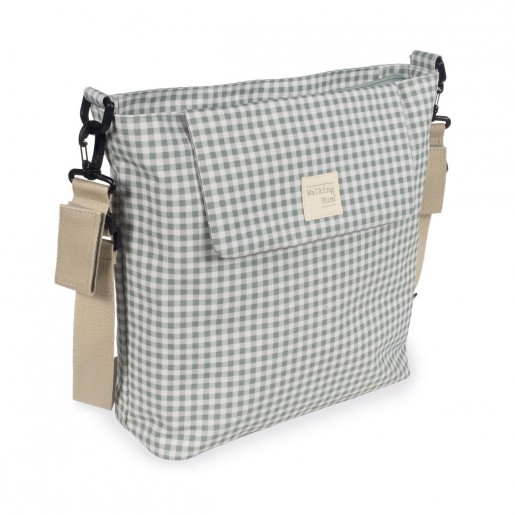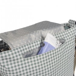 Bolso cambiador I Love Vichy verde para silla de paseo que incluye cambiador para bebe. Bolsa canastilla muy ligera, resistente y de gran capacidad para llevar todo lo necesario para el paseo del bebe. Tiene multiples bolsillos para poder tener todo ordenado y a mano. La bolsa tiene un sistema universal de fijación, con 2 asas cortas ajustables que facilita la colocación en cualquier modelo de silla de paseo. También incorpora una asa larga para poder colgarla en el hombro y asas cortas de mano. Gran calidad y mucho estilo. Fabricada en un material resistente y de fácil limpieza. Walking Mum protege a tu bebé utilizando los mejores tejidos, libres de colorantes azoicos y sustancias nocivas para la salud. Nuestra colección Walking Mum guarda toda la calidad de la marca Pasito a Pasito pero con un particular sello de estilo urbano y moderno que no pasa desapercibido, para vestir diferente los paseos con tu bebé. Las bolsas de maternidad de esta línea son más sport y prácticas, especialmente pensadas en mamás y papás modernos que aprecian los diseños más actuales y en tendencia sin dejar de lado la calidad y la funcionalidad de los accesorios que complementan y hacen más cómodos todos los paseos con sus bebés. Especificaciones: Materiales: 100% algodón plastificado. Medidas: 41X34X12 cm.