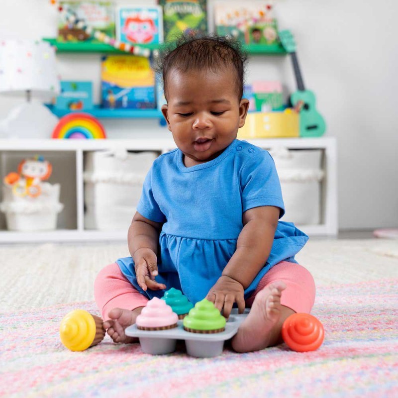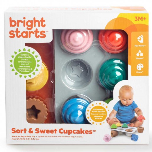 ¡La clasificación de formas es pan comido con Sort & Sweet Cupcakes Shape Sorter de Bright Starts! Cada uno de los 6 cupcakes fáciles de agarrar fomenta el desarrollo de habilidades motoras finas a medida que el bebé descubre cuadrados, triángulos, círculos y más.
