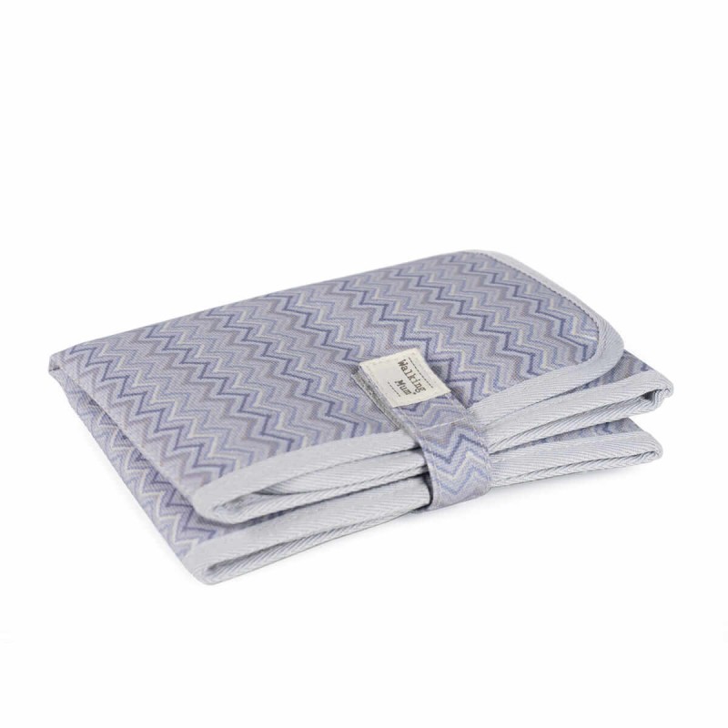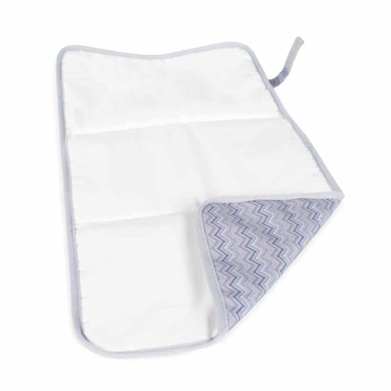 El cambiador Zigzag con estampado geométrico en tonos azules es un modelo muy cómodo, práctico y fácil de transportar. Un patrón especialmente ideado para utilizarlo cuando necesites cambiar a tu bebé y es plegable para facilitar su trasladarlo a todas partes. Es un diseño casual, elegante y funcional que se presenta en formato plegado para hacerlo completamente portátil sin ocupar mucho espacio en cualquier bolso donde lo guarde. Cuenta con cintas de agarre que lo mantienen cerrado para reducir su espacio y poderlo llevar dentro de la bolsa de maternidad. El cambiador de bebé cuenta con un forro interior acolchado e impermeable para hacerlo más fácil de limpiar por encima una vez termines de usarlo y así evitar que se acumulen olores en el interior. Gran calidad y mucho estilo. Fabricado en un material resistente y de fácil limpieza. Walking Mum protege a tu bebé utilizando los mejores tejidos, libres de colorantes azoicos y sustancias nocivas para la salud. Nuestra colección Walking Mum guarda toda la calidad de la marca Pasito a Pasito pero con un particular sello de estilo urbano y moderno que no pasa desapercibido, para vestir diferente los paseos con tu bebé. Los accesorios de maternidad de esta línea son más sport y prácticos, especialmente pensados en mamás y papás modernos que aprecian los diseños más actuales y en tendencia sin dejar de lado la calidad y la funcionalidad de los complementos que hacen más cómodos todos los paseos con sus bebés. Especificaciones: Materiales: 100% algodón plastificado. Medidas: 33X66X1 cm.