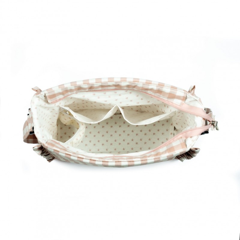 Bolso cambiador Remy en cuadro vichy XL rosa para silla de paseo que incluye cambiador para bebe. Bolsa canastilla muy ligera, resistente y de gran capacidad para llevar todo lo necesario para el paseo del bebe. Tiene multiples bolsillos para poder tener todo ordenado y a mano. La bolsa tiene un sistema universal de fijación, con 2 asas cortas ajustables que facilita la colocación en cualquier modelo de silla de paseo. También incorpora una asa larga para poder colgarla en el hombro. Gran calidad y mucho estilo. Fabricada en un material resistente y de fácil limpieza. Walking Mum protege a tu bebé utilizando los mejores tejidos, libres de colorantes azoicos y sustancias nocivas para la salud. Nuestra colección Walking Mum está diseñada con un particular sello de estilo urbano y moderno que no pasa desapercibido, para vestir diferente los paseos con tu bebé. Las bolsas de maternidad de esta línea son más sport y prácticas, especialmente pensadas en mamás y papás modernos que aprecian los diseños más actuales y en tendencia sin dejar de lado la calidad y la funcionalidad de los accesorios que complementan y hacen más cómodos todos los paseos con sus bebés. Especificaciones: Materiales: 100% algodón. Color: Rosa. Medidas: 32X12X32 cm.