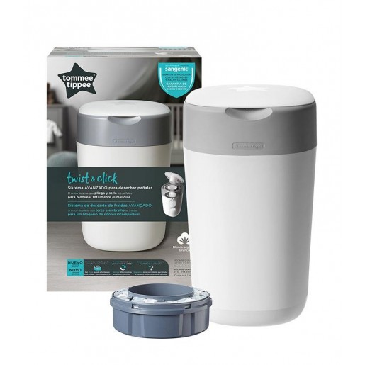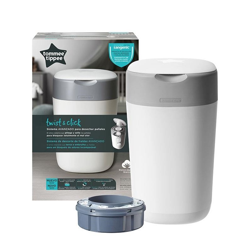 El contenedor Twist & Click de Tommee Tippee utiliza la tecnología de Sangenic para desechar los pañales sucios de forma rápida, sencilla y segura, ofreciendo una protección garantizada contra el mal olor y los gérmenes. Tiene capacidad para 28 pañales y te ahorra viajes al cubo de basura para que puedas pasar más tiempo con tu bebé.