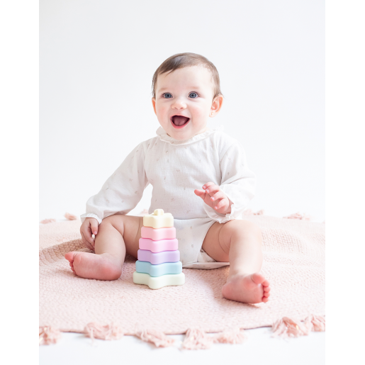 Compuesto por 6 estrellas apilables, este juguete animará a los más pequeños a clasificarlas por tamaño y color.