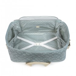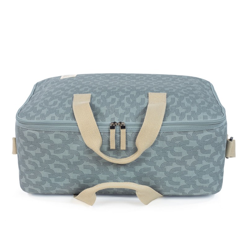 La maleta de bebé Tulum con estampado geométrico verde es un bolso especialmente diseñado para el momento más importante del embarazo, que es la llegada de tu bebé, momento en el que hay un montón de cosas que preparar. Por esto necesitas un espacio cómodo para transportar todo lo necesario para ti, el padre y el niño. Esta maleta de bebé es el modelo perfecto para cubrir todo lo que no puede faltar en este día tan especial. Es cómoda, ligera y manejable con dimensiones rectangulares y apertura práctica para tener todas tus necesidades cubiertas. Cuenta con cierre seguro de cremallera en ambas direcciones que facilitan su apertura, incluye una correa larga para llevar colgada en el hombro y asas cortas de mano. Además en el compartimiento interior tiene un forro a juego con gomas para contener la ropa y mantener todo en su lugar. Gran calidad y mucho estilo. Fabricado en un material resistente y de fácil limpieza a mano o a máquina a 30 °C. Walking Mum protege a tu bebé utilizando los mejores tejidos, libres de colorantes azoicos y sustancias nocivas para la salud. Nuestra colección Walking Mum guarda toda la calidad de la marca Pasito a Pasito pero con un particular sello de estilo urbano y moderno que no pasa desapercibido, para vestir diferente los paseos con tu bebé. Las bolsas de maternidad de esta línea son más sport y prácticas, especialmente pensadas en mamás y papás modernos que aprecian los diseños más actuales y en tendencia sin dejar de lado la calidad y la funcionalidad de los accesorios que complementan y hacen más cómodos todos los paseos con sus bebés. Especificaciones: Materiales: 100 % algodón plastificado. Medidas: 49X37X17 cm.