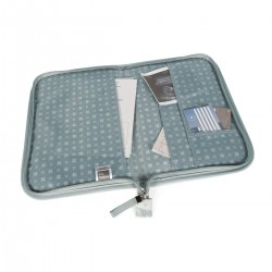 El libro de nacimiento Tulum con estampado geométrico verde es una funcional carpeta portadocumentos de diseño a juego con la bolsa de maternidad. Un complemento indispensable para llevar contigo a todas partes que te ayudará a tener ordenada toda la documentación y papeles médicos de tu bebé (vacunas, recetas, partida de nacimiento). Esta funda portadocumentos está elaborada en tela resistente con tonalidad rosa, cuenta con múltiples bolsillos plastificados distribuidos en ambos lado para organizar mejor todo. También tiene un práctico cierre de cremallera para guardar seguro el libro de Nacimiento y todos los documentos de tu bebé. Gran calidad y mucho estilo. Fabricado en un material resistente y de fácil limpieza a mano o a máquina a 30 °C. Walking Mum protege a tu bebé utilizando los mejores tejidos, libres de colorantes azoicos y sustancias nocivas para la salud. Nuestra colección Walking Mum guarda toda la calidad de la marca Pasito a Pasito pero con un particular sello de estilo urbano y moderno que no pasa desapercibido, para vestir diferente los paseos con tu bebé. Los accesorios de esta línea son más sport y prácticos, especialmente pensadas en mamás y papás modernos que aprecian los diseños más actuales y en tendencia sin dejar de lado la calidad y la funcionalidad de los complementos que hacen más cómodos todos los paseos con sus bebés. Especificaciones: Materiales: 100% agodón plastificado. Medidas: 19 X 28 X 1 cm.