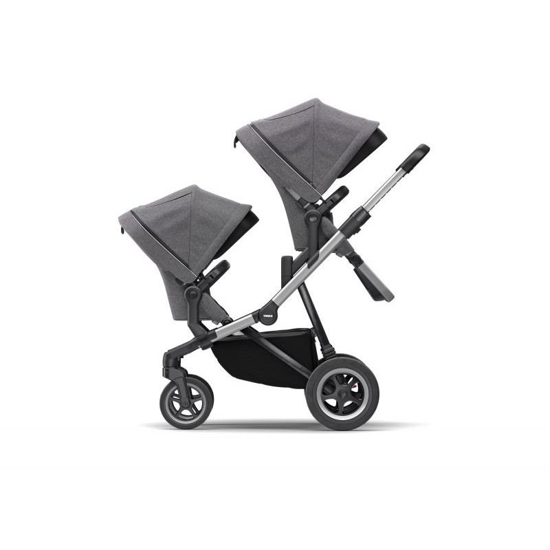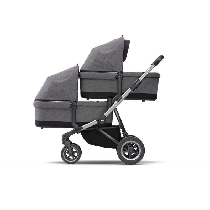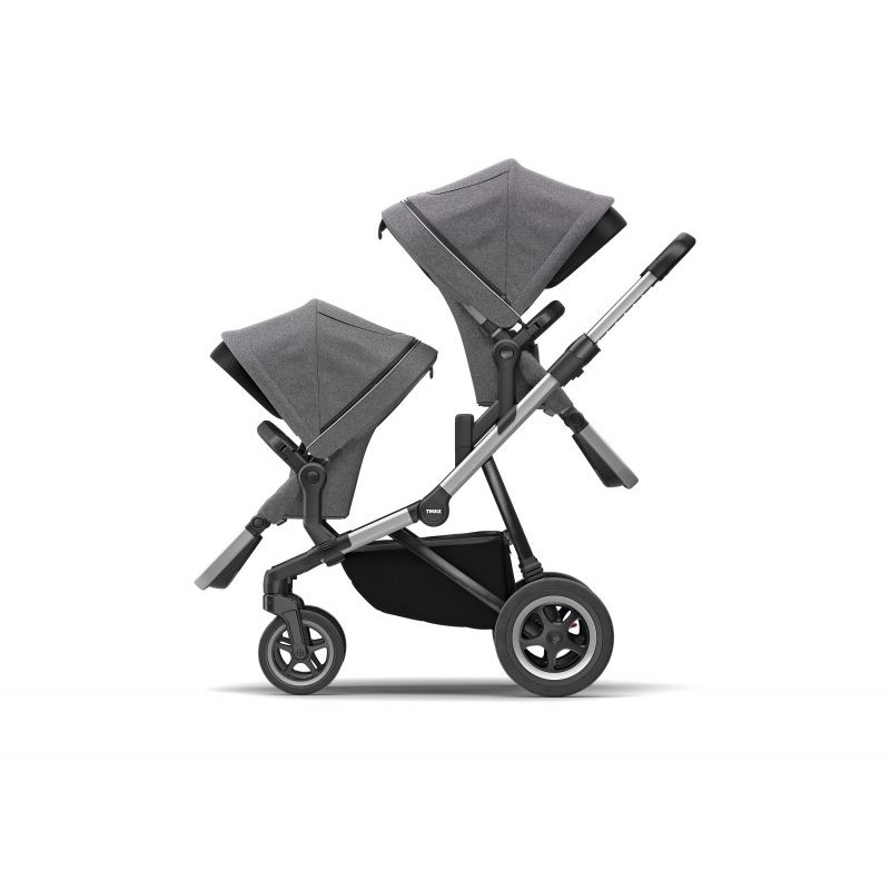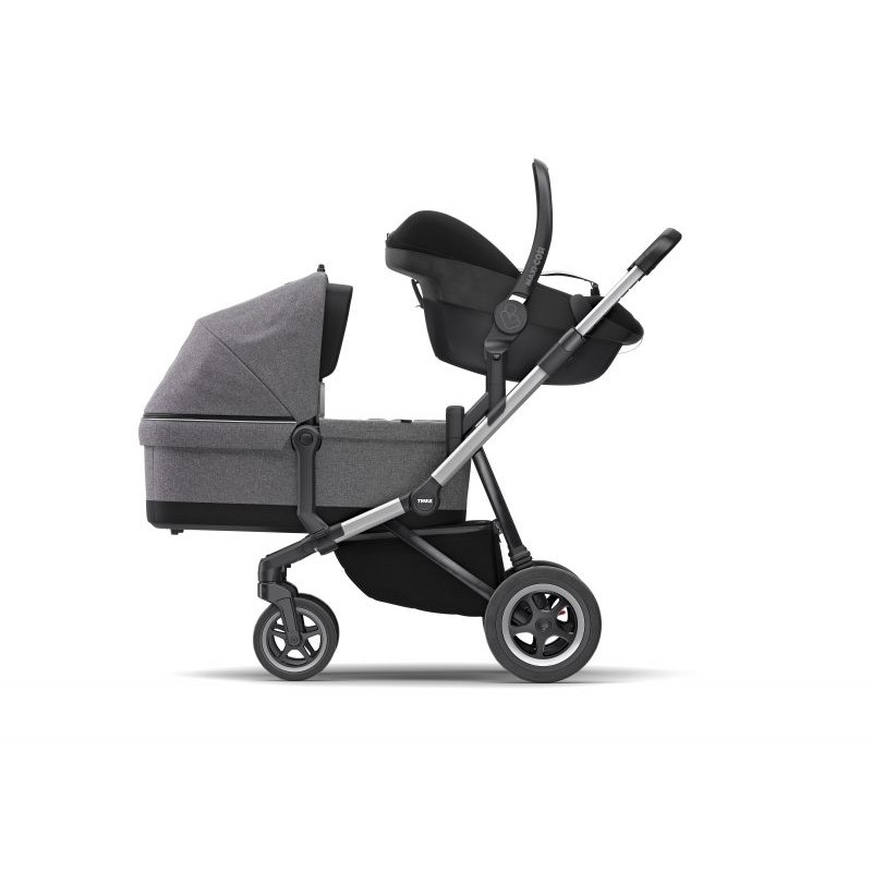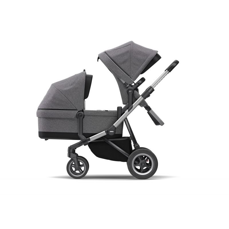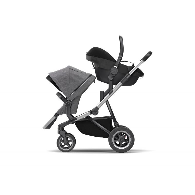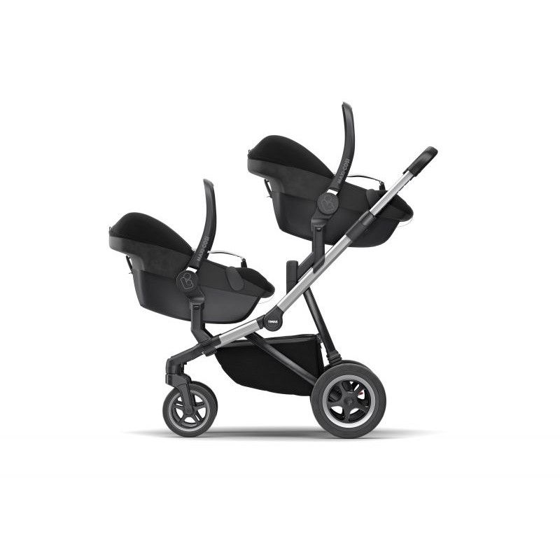 Flexibilidad para cada ocasión. De bebé a niños de 1-2 años, y de uno a dos niños, Thule Sleek puede convertirse según las necesidades de tu familia. *El moisés y el segundo asiento se venden por separado