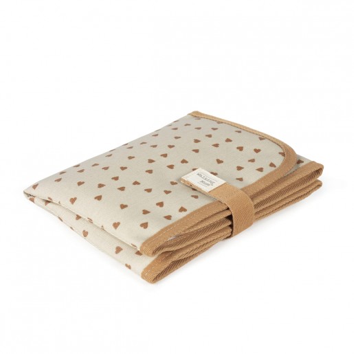 El cambiador Poppy Canela con corazones es un modelo muy cómodo, práctico y fácil de transportar. Un patrón especialmente ideado para utilizarlo cuando necesites cambiar a tu bebé y es plegable para facilitar su trasladarlo a todas partes. Es un diseño casual, elegante y funcional que se presenta en formato plegado para hacerlo completamente portátil sin ocupar mucho espacio en cualquier bolso donde lo guarde. Cuenta con cintas de agarre que lo mantienen cerrado para reducir su espacio y poderlo llevar dentro de la bolsa de maternidad. El cambiador de bebé cuenta con un forro interior acolchado e impermeable para hacerlo más fácil de limpiar por encima una vez termines de usarlo y así evitar que se acumulen olores en el interior. Gran calidad y mucho estilo. Fabricado en un material resistente y de fácil limpieza. Walking Mum protege a tu bebé utilizando los mejores tejidos, libres de colorantes azoicos y sustancias nocivas para la salud. Nuestra colección Walking Mum guarda toda la calidad de la marca Pasito a Pasito pero con un particular sello de estilo urbano y moderno que no pasa desapercibido, para vestir diferente los paseos con tu bebé. Los accesorios de maternidad de esta línea son más sport y prácticos, especialmente pensados en mamás y papás modernos que aprecian los diseños más actuales y en tendencia sin dejar de lado la calidad y la funcionalidad de los complementos que hacen más cómodos todos los paseos con sus bebés. Especificaciones: Materiales: 100% algodón plastificado. Medidas: 33X66X1 cm.