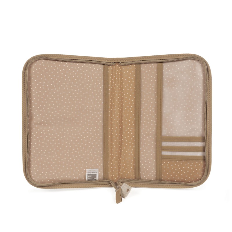 El libro de nacimiento Poppy Canela con corazones es una funcional carpeta portadocumentos de diseño a juego con la bolsa de maternidad. Un complemento indispensable para llevar contigo a todas partes que te ayudará a tener ordenada toda la documentación y papeles médicos de tu bebé (vacunas, recetas, partida de nacimiento). Esta funda portadocumentos está elaborada en tela resistente, cuenta con múltiples bolsillos distribuidos en ambos lado para organizar mejor todo. También tiene un práctico cierre de cremallera para guardar seguro el libro de Nacimiento y todos los documentos de tu bebé. Gran calidad y mucho estilo. Fabricado en un material resistente y de fácil limpieza a mano o a máquina a 30 °C. Walking Mum protege a tu bebé utilizando los mejores tejidos, libres de colorantes azoicos y sustancias nocivas para la salud. Nuestra colección Walking Mum guarda toda la calidad de la marca Pasito a Pasito pero con un particular sello de estilo urbano y moderno que no pasa desapercibido, para vestir diferente los paseos con tu bebé. Los accesorios de esta línea son más sport y prácticos, especialmente pensadas en mamás y papás modernos que aprecian los diseños más actuales y en tendencia sin dejar de lado la calidad y la funcionalidad de los complementos que hacen más cómodos todos los paseos con sus bebés. Especificaciones: Materiales: 100% agodón plastificado. Medidas: 19 X 28 X 1 cm.