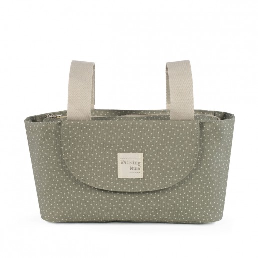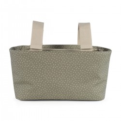El bolso organizador Poppy Musgo de topitos para silla de paseo es un modelo muy ligero además de ser resistente y espacioso para que puedas llevar todo lo que podrías necesitar durante el paseo de tu bebé. Aparte de la gran capacidad que tiene, está distribuido para facilitarte la organización, con varios bolsillos exteriores e interiores que te ayudarán a colocar todos tus complementos ordenados y así puedes ubicarlos más fácil cuando vayas a usarlos. Su diseño moderno y casual lo hacen perfecto para usar a diario y combinar con tus looks casuales o deportivos. Incorpora asas cortas con las que puedes fijarla a cualquier modelo de silla de paseo. Gran calidad y mucho estilo. Fabricado en un material resistente y de fácil limpieza a mano o a máquina a 30 °C. Walking Mum protege a tu bebé utilizando los mejores tejidos, libres de colorantes azoicos y sustancias nocivas para la salud. Nuestra colección Walking Mum guarda toda la calidad de la marca Pasito a Pasito pero con un particular sello de estilo urbano y moderno que no pasa desapercibido, para vestir diferente los paseos con tu bebé. Las bolsas de maternidad de esta línea son más sport y prácticas, especialmente pensadas en mamás y papás modernos que aprecian los diseños más actuales y en tendencia sin dejar de lado la calidad y la funcionalidad de los accesorios que complementan y hacen más cómodos todos los paseos con sus bebés. Especificaciones: Materiales: 100 % algodón plastificado. Medidas: 31X17X12 cm.