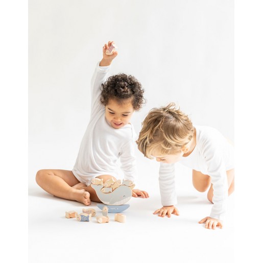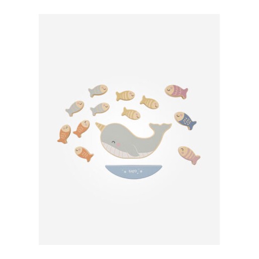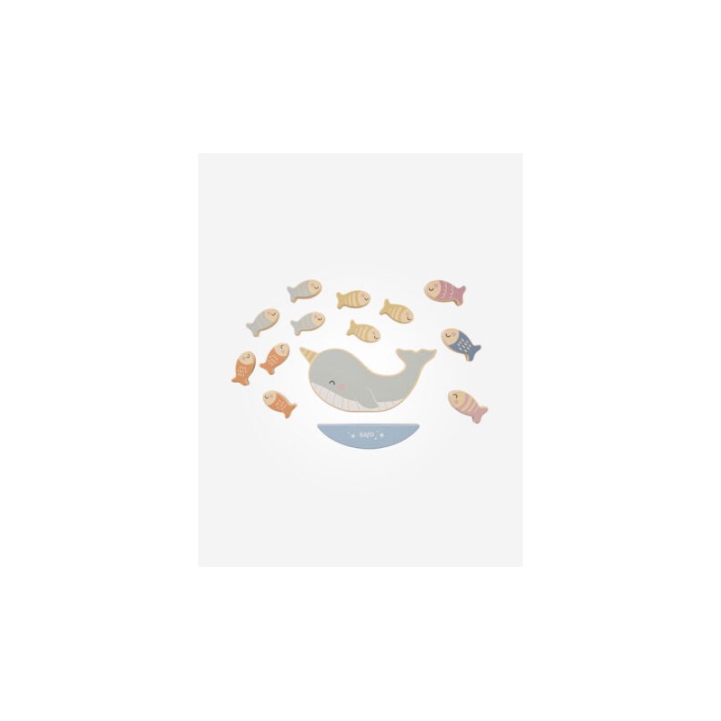 ¡Cuidado con el oleaje! Este juego de equilibrio pondrá a prueba la habilidad de toda la familia. Consiste en colocar tantos pececitos como sea posible sobre el narval sin que se caigan. Coloca el gran narval sobre el balancín y, en grupo o tú solo, con mucho cuidado, apila los pececitos. ¿Conseguirás ponerlos todos antes de que se caigan?