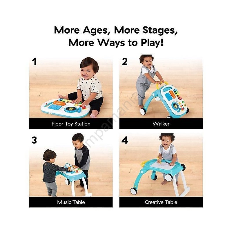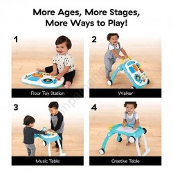 4 modos de uso: panel de actividades para jugar en el suelo, andador, mesa de actividades musicales y mesa creativa.