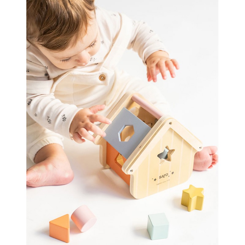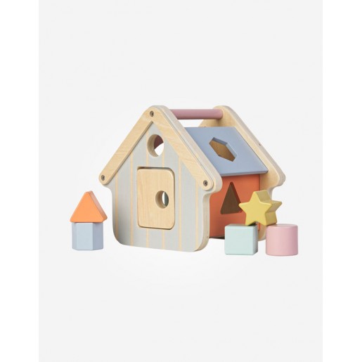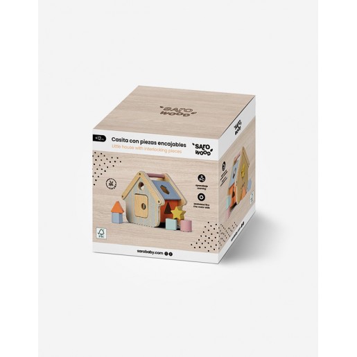 Incluye: casita de madera y 5 piezas encajables.