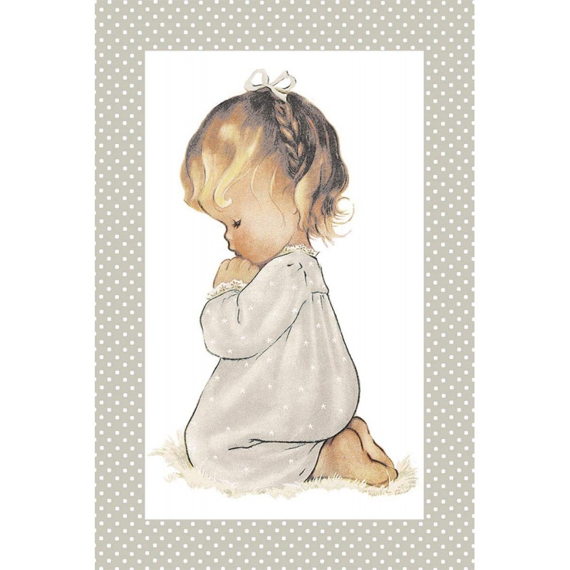 Cuadro Niña Rezando con greca de topitos. Un clásico ideal para decorar la habitación de los peques.