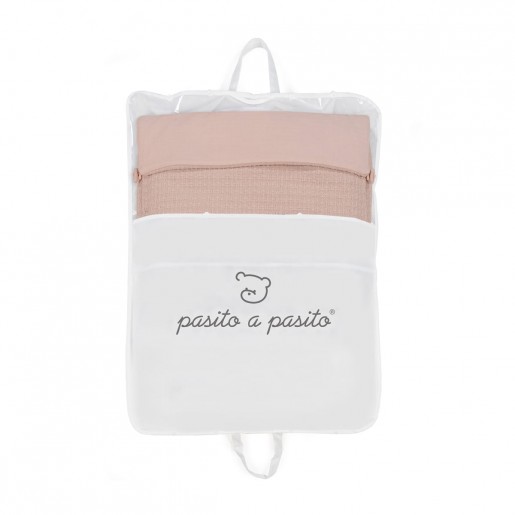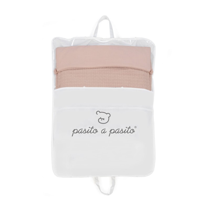 El saco cuco Icon Rose de Pasito a Pasito es un saco de dormir para bebé elaborado en tejido leno y bambula muy suave. Es un accesorio básico 3 en 1 que sirve para utilizarlo en casa para cubrir el portabebé Grupo 0 y también le va muy bien como cubre capazo. Trasera con material anti-sudoración que evita la sudoración excesiva del bebe y protege la silla haciendo el paseo más confortable. Relleno de fibra hueca extraíble. Es totalmente universal porque dispone de varias aperturas (ojales) y ajustes necesarios para adaptarla a la mayoría de los cucos, portabebés y sillas de paseo en su interior. Un complemento muy útil y versátil en las cosas de tu bebé. Una vez desenfundada la base se convierte en colchoneta ligera para la silla de paseo. Prepara con mucho amor el nido rosa de tu niña/niño y decora sus sueños con un toque diferente en donde quiera que lo recuestes. Una manta acolchada y esponjosa que permite disfrutar de un descanso más agradable con la forma acogedora que tiene de nido. Es un diseño bonito, simple y cómodo que crea un nido para tu bebé manteniéndolo arropado y protegido en días de brisa. El saco se adapta sin problemas a cualquier coche para darle la comodidad que necesita. Acabados de calidad. Todas nuestras fundas están fabricadas conforme a las más exigentes normativas europeas, con materiales de gran calidad, libres de colorantes azoicos, ftalatos y sustancias nocivas para la salud. Tela de fácil limpieza, se recomienda lavar a máquina a 30º. Los productos para bebé de Pasito a Pasito cuentan con un diseño muy diferente a todas las demás. Sus colecciones se caracterizan por el trabajo al detallada, pensadas siempre desde un punto de vista práctico. Utilizan materiales de primera calidad para remarcar la elegancia y la armonía en cada una de sus piezas. Nuestros modelos son exclusivos y de estilo inconfundible, pensados en las madres actuales que gozan de buen gusto y que aprecian los detalles tanto como nosotros. Especificaciones: Materiales: 100% algodón. Color: Rosa. Tamaño universal.