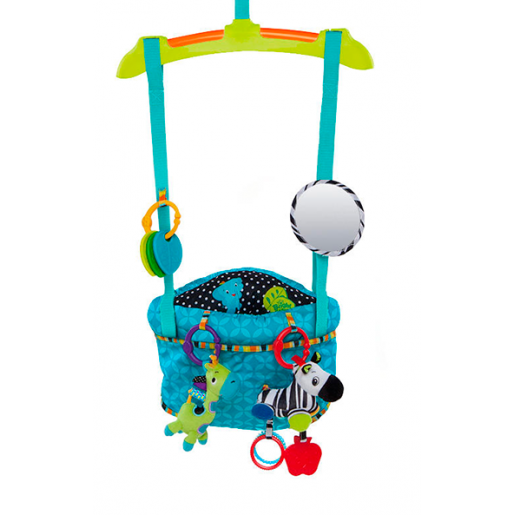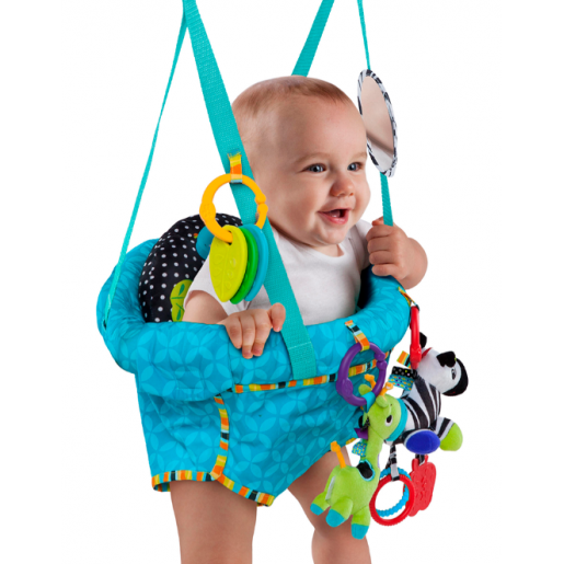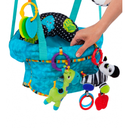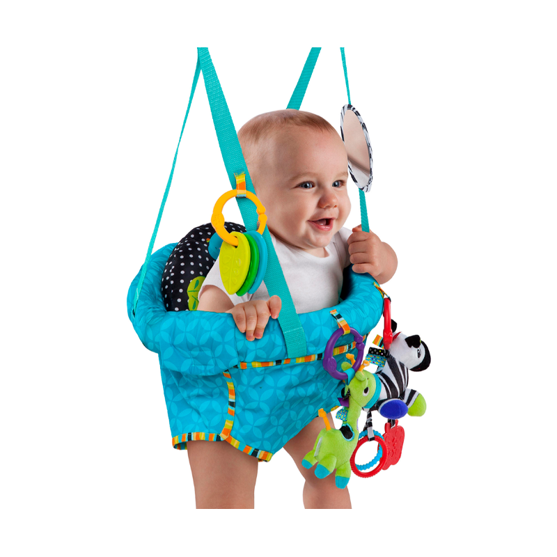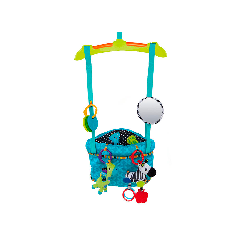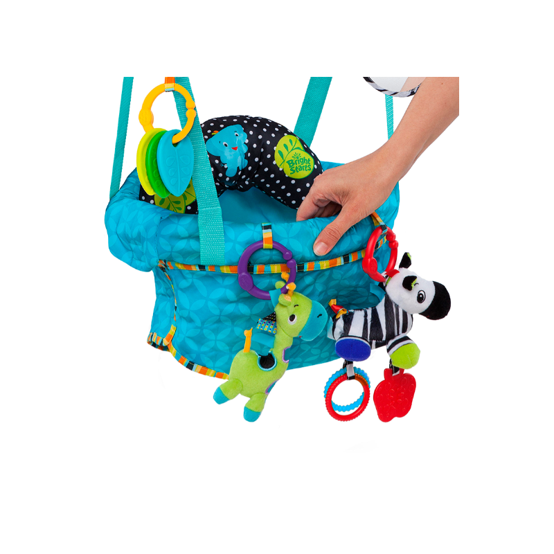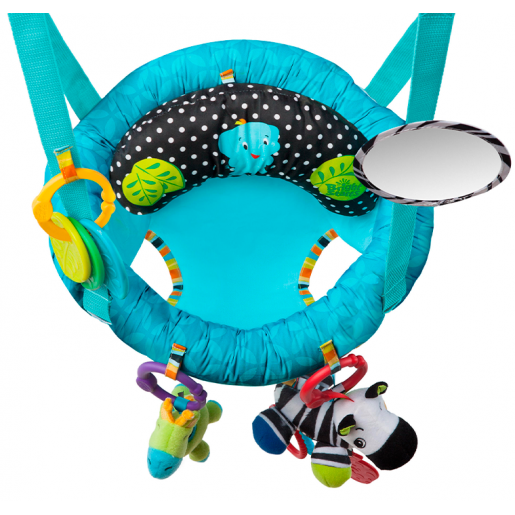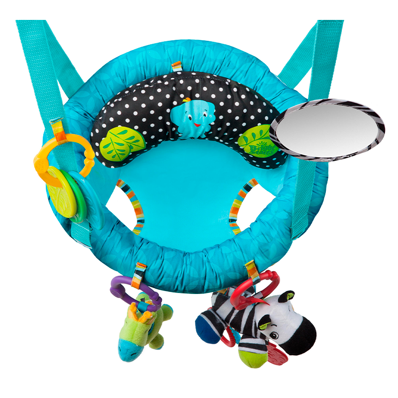 Incluye 4 juguetes: una jirafa y una cebra de peluche, una serie mordedores y un espejo, para no aburrirse entre salto y salto. Con correas ajustables para adaptar la altura al bebé a medida que crezca. La almohadilla de tejido suave sirve de apoyo extra para los bebés más pequeños.