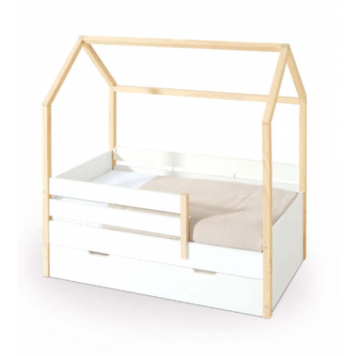 Cama-casita Montessori 70x140 cm madera/blanco · Sogni NB1400