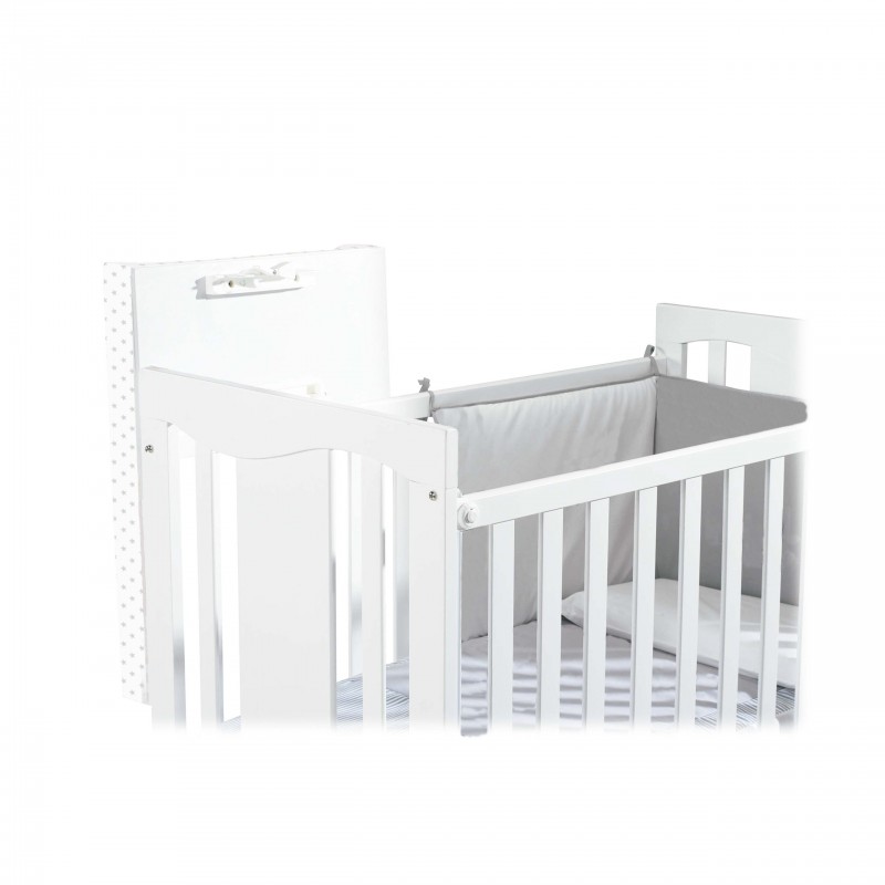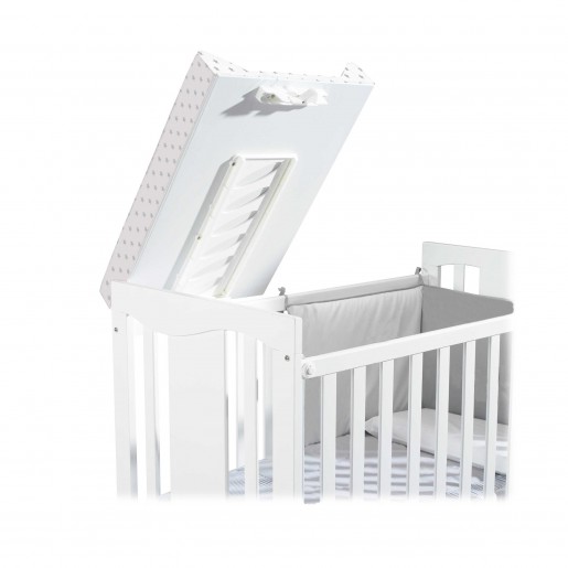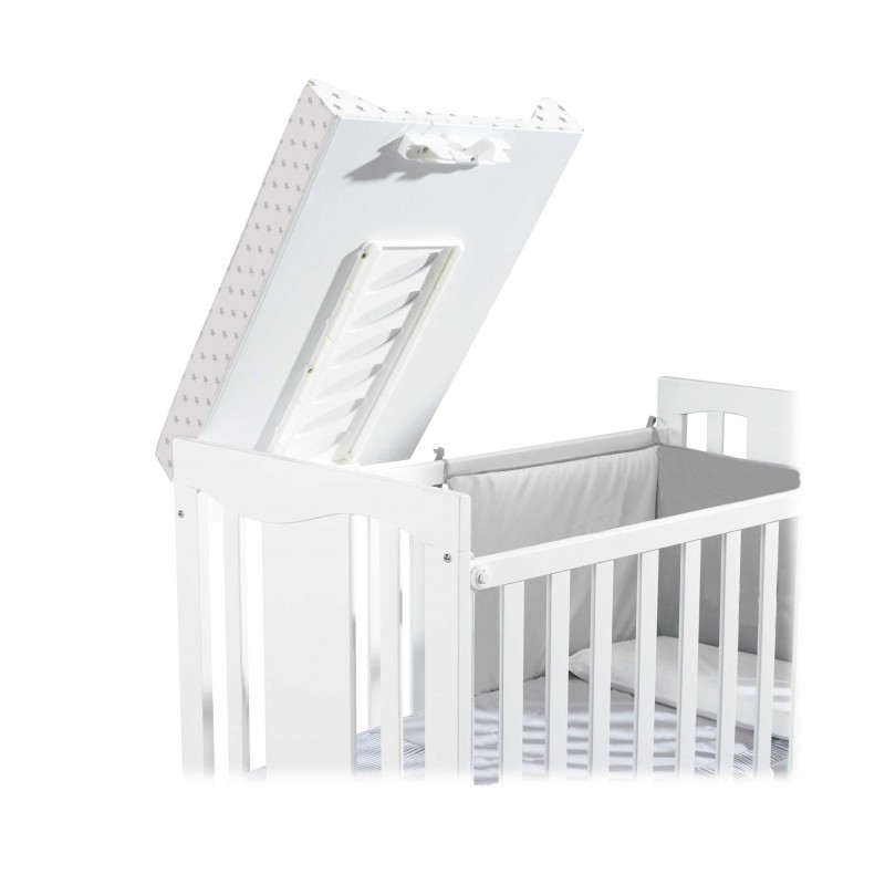 Si tienes poco espacio, este es tu complemento perfecto. Con el accesorio opcional cambiador cuna, podrás convertir tu cuna de 120x60 cm en una cuna-cambiador. Además, con un sencillo gesto podrás plegarlo para que no moleste a tu bebé en sus noches. Consulta su compatibilidad con la cuna que has escogido.