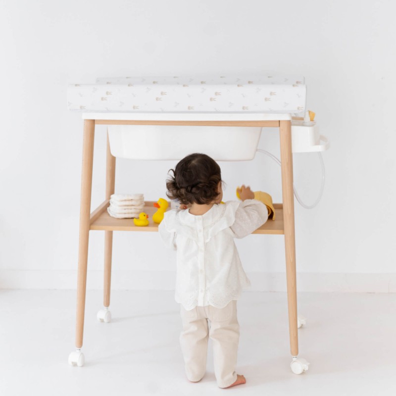 Fabricada con madera de haya, esta ligera bañera con ruedas presenta patas redondeadas que le dan un toque moderno y seguro. La nueva cubeta de grandes dimensiones redefine la experiencia del baño, ofreciendo comodidad y mayor tiempo de uso. Incluye cubeta, jabonera y desagüe para extraer cómodamente el agua.