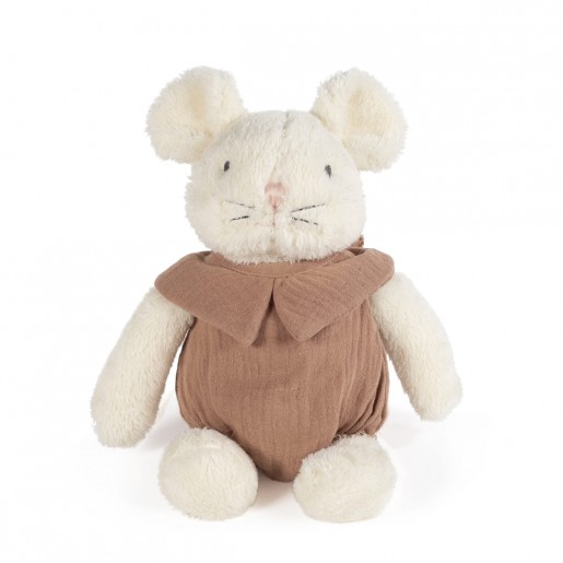 Ratoncito de peluche con vestido color vede o canela para el bebé. Muy suave y con una textura muy agradable. Sus ojos son bordados garantizándo la seguridad de tu bebé. Fabricado bajo normativa de seguridad en juguetes EN-71. Medidas: 25 cm.