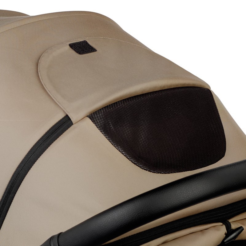 Capota extensible y con protección para el viento para un mayor amparo en condiciones climáticas adversas.