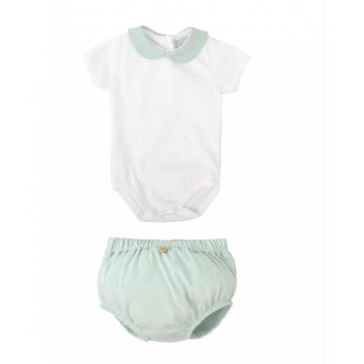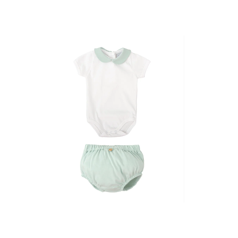 Conjunto ranita + body manga corta con cuello bebé.