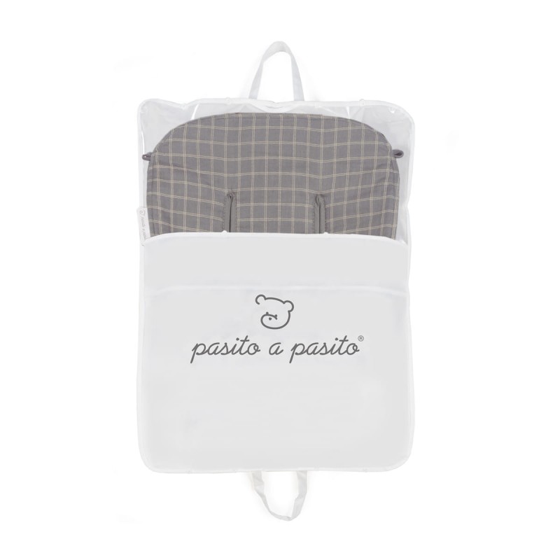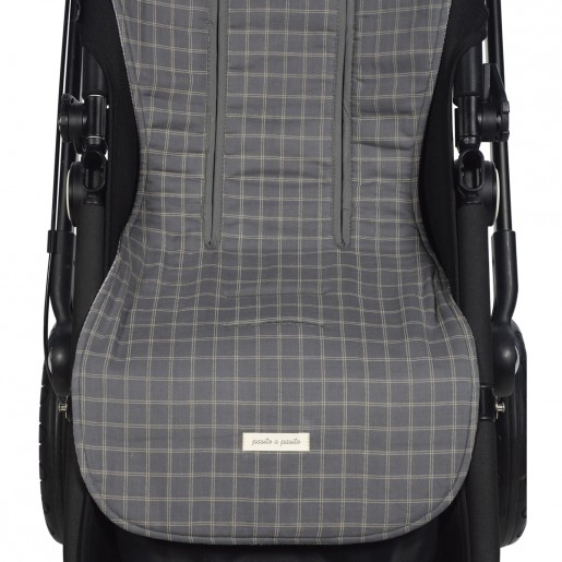 La colchoneta Tartan de Pasito a pasito en tejido de cuadros gris es la cobertura ideal que se adapta a la mayoría de las sillas de paseo y darle mayor comodidad a tu hijo durante sus paseos en días calurosos. Está diseñada en el respaldar con una capa de tejido en material transpirable que aísla la humedad y evita la sudoración excesiva del bebe, protegiendo la silla para hacer el paseo más confortable. Este modelo está pensada para adaptarla a la mayoría de las sillitas de paseo ya que dispone de varias aperturas (ojales) y ajustes para cubrir la superficie donde se recuesta el bebé. Acabados de calidad. Todas nuestras fundas están fabricadas conforme a las más exigentes normativas europeas, con materiales de gran calidad, libres de colorantes azoicos, ftalatos y sustancias nocivas para la salud. Tela de fácil limpieza, se recomienda lavar a máquina a 30º. Los productos para bebé de Pasito a Pasito cuentan con un diseño muy diferente a todas las demás. Sus colecciones se caracterizan por el trabajo al detallada, pensadas siempre desde un punto de vista práctico. Utilizan materiales de primera calidad para remarcar la elegancia y la armonía en cada una de sus piezas. Nuestros modelos son exclusivos y de estilo inconfundible, pensados en las madres actuales que gozan de buen gusto y que aprecian los detalles tanto como nosotros. Especificaciones: Materiales: 100% algodón. Tamaño universal.