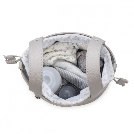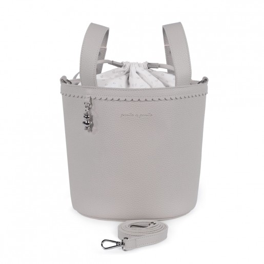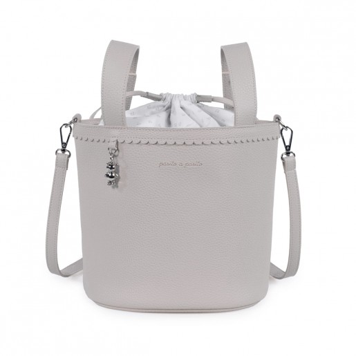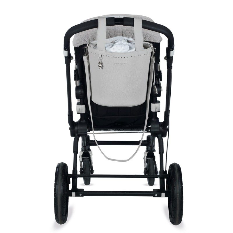 Bolso bucket para carrito de bebé Icon Pasito a Pasito, fabricada en polipiel de alta calidad en un elegante tono rosa pastel. Su diseño tipo cubo incluye un delicado borde festoneado y un detalle colgante metálico en forma de osito que aporta un toque distintivo. . Es el accesorio ideal para llevar lo esencial del bebé con estilo y comodidad durante tus paseos. Su tamaño compacto es perfecto para organizar pañales, biberones y otros objetos indispensables, manteniendo todo al alcance de la mano. La bolsa cuenta con un práctico cierre de tipo saco con cordón ajustable que protege tus pertenencias. Incorpora asa larga para poder usar como bandolera y asas cortas para enganchar al carrito. Combina funcionalidad y diseño refinado, convirtiéndose en un complemento imprescindible para los paseos con tu bebé. Está fabricado con materiales de gran calidad, libres de colorantes azoicos, ftalatos y sustancias nocivas para la salud. Los productos para bebé de Pasito a Pasito cuentan con un diseño muy diferente a todas las demás. Sus colecciones se caracterizan por el trabajo al detallada, pensadas siempre desde un punto de vista práctico. Utilizan materiales de primera calidad para remarcar la elegancia y la armonía en cada una de sus piezas. Nuestros modelos son exclusivos y de estilo inconfundible, pensados para madres actuales que gozan de buen gusto y que aprecian los detalles tanto como nosotros. Especificaciones: Materiales: Eco-leather. Color: Gris. Medidas: 17×22 cm.