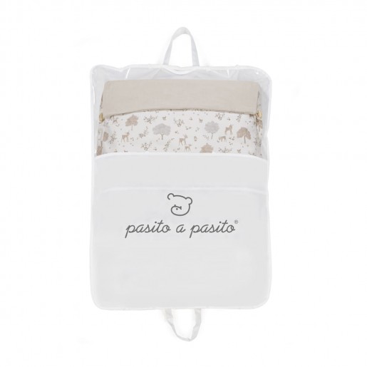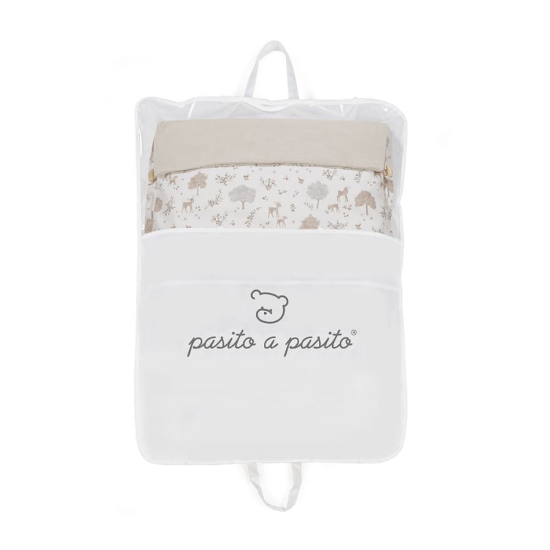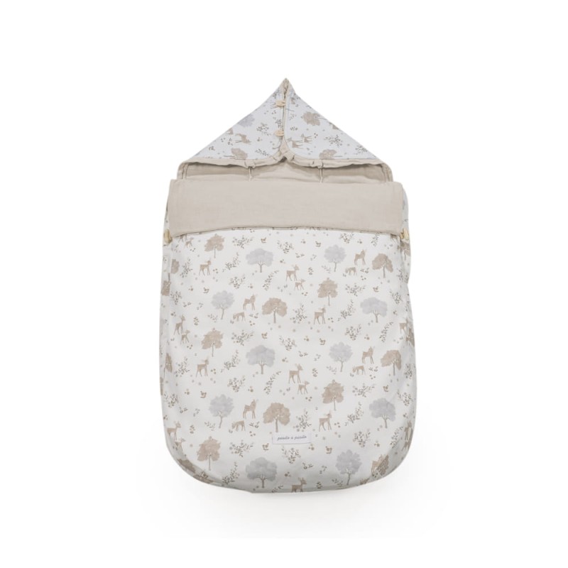 El saco cuco Nara de Pasito a Pasito es un saco de dormir para bebé elaborado en tejido de algodón y bambula muy suave en el interior. Es un accesorio básico 3 en 1 que sirve para utilizarlo en casa para cubrir el portabebé Grupo 0 y también le va muy bien como cubre capazo. Trasera con material anti-sudoración que evita la sudoración excesiva del bebe y protege la silla haciendo el paseo más confortable. Relleno de fibra hueca extraíble. Es totalmente universal porque dispone de varias aperturas (ojales) y ajustes necesarios para adaptarla a la mayoría de los cucos, portabebés y sillas de paseo en su interior. Un complemento muy útil y versátil en las cosas de tu bebé. Una vez desenfundada la base se convierte en colchoneta ligera para la silla de paseo. Prepara con mucho amor el nido rosa de tu niña/niño y decora sus sueños con un toque diferente en donde quiera que lo recuestes. Una manta acolchada y esponjosa que permite disfrutar de un descanso más agradable con la forma acogedora que tiene de nido. Es un diseño bonito, simple y cómodo que crea un nido para tu bebé manteniéndolo arropado y protegido en días de brisa. El saco se adapta sin problemas a cualquier coche para darle la comodidad que necesita. Acabados de calidad. Todas nuestras fundas están fabricadas conforme a las más exigentes normativas europeas, con materiales de gran calidad, libres de colorantes azoicos, ftalatos y sustancias nocivas para la salud. Tela de fácil limpieza, se recomienda lavar a máquina a 30º. Los productos para bebé de Pasito a Pasito cuentan con un diseño muy diferente a todas las demás. Sus colecciones se caracterizan por el trabajo al detallada, pensadas siempre desde un punto de vista práctico. Utilizan materiales de primera calidad para remarcar la elegancia y la armonía en cada una de sus piezas. Nuestros modelos son exclusivos y de estilo inconfundible, pensados en las madres actuales que gozan de buen gusto y que aprecian los detalles tanto como nosotros. Especificaciones: Materiales: 100% algodón. Universal.