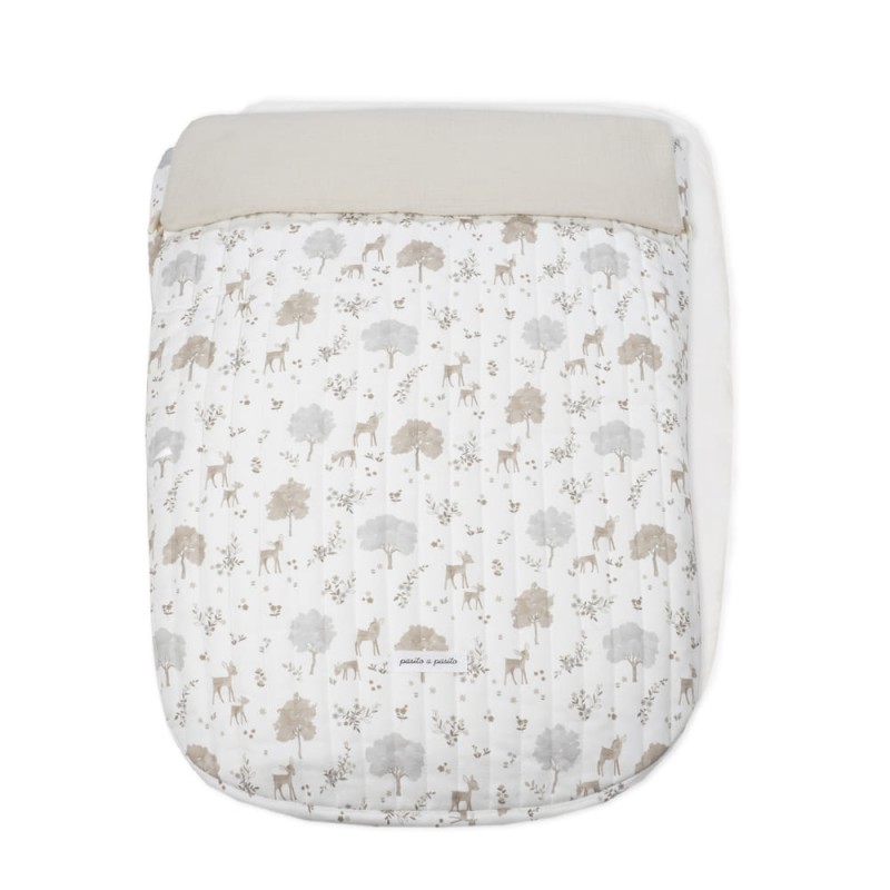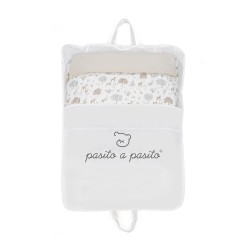 Funda Nara de Pasito a pasito en tejido de algodón y bambula muy suave ideal para cubrir la silla de paseo provista de saco. Está diseñado en el respaldar con una capa de tejido en material transpirable que aísla la humedad y evita la sudoración excesiva del bebe haciendo el paseo más confortable. Relleno de fibra hueca extraíble. Reposapiés de poliéster para facilitar la limpieza. Dispone de varias aperturas (ojales) y ajustes para adaptarla a la mayoría de la sillitas de paseo, convirtiendo el paseo de tu bebé seguro y confortable. Es un diseño bonito, simple y cómodo que crea un nido para tu bebé manteniéndolo arropado y protegido en días de brisa. El saco se adapta sin problemas a cualquier coche para darle la comodidad que necesita. Acabados de calidad. Todas nuestras fundas están fabricadas conforme a las más exigentes normativas europeas, con materiales de gran calidad, libres de colorantes azoicos, ftalatos y sustancias nocivas para la salud. Tela de fácil limpieza, se recomienda lavar a máquina a 30º. Los productos para bebé de Pasito a Pasito cuentan con un diseño muy diferente a todas las demás. Sus colecciones se caracterizan por el trabajo al detallada, pensadas siempre desde un punto de vista práctico. Utilizan materiales de primera calidad para remarcar la elegancia y la armonía en cada una de sus piezas. Nuestros modelos son exclusivos y de estilo inconfundible, pensados en las madres actuales que gozan de buen gusto y que aprecian los detalles tanto como nosotros. Materiales: 100% algodón. Tamaño universal.