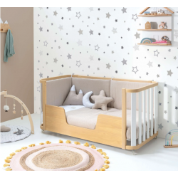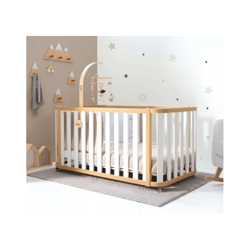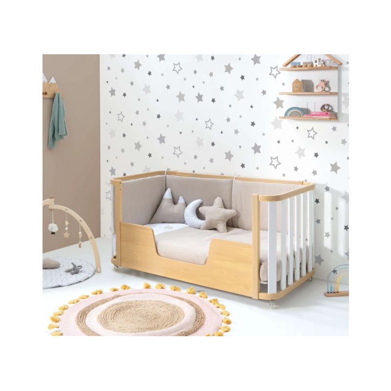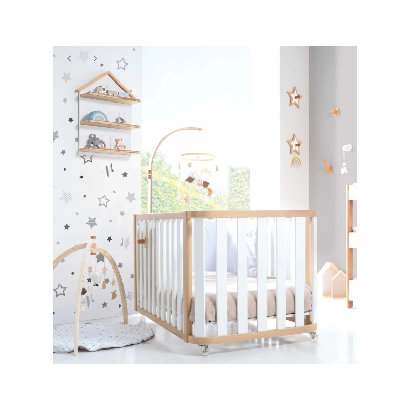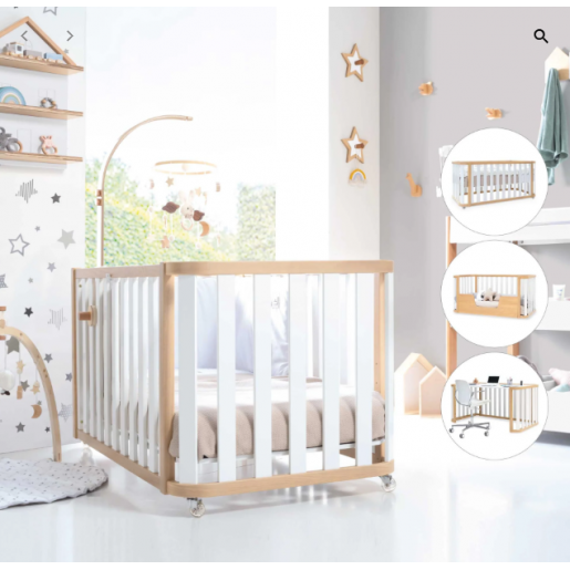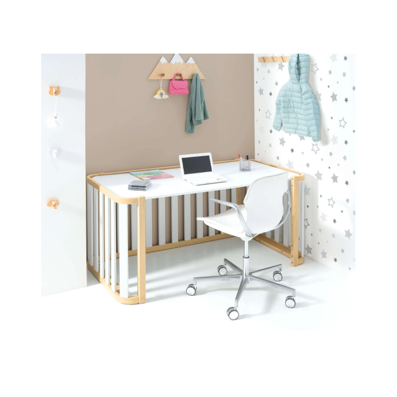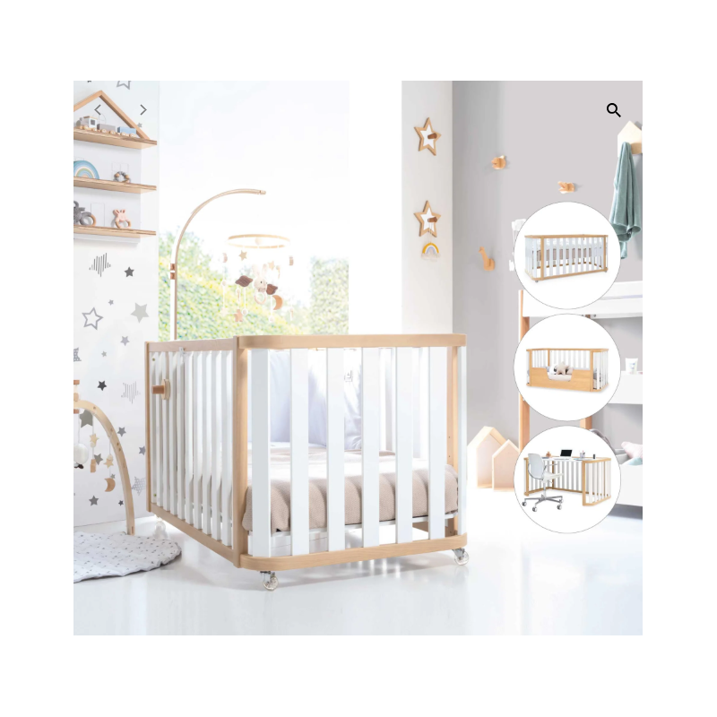 ¡Una pieza única para la habitación infantil de tu bebé! Esta cuna evolutiva de madera Cres Plus Due Life Wood, con un diseño excepcional, cuenta con 3 fases evolutivas para adaptarse al crecimiento de tu peque. Primero podrás utilizarla como una cuna de 70x140 cm, luego como una camita Montessori del mismo tamaño y, al final, como un práctico escritorio. ¡Para prolongar su utilidad al máximo! Además, con el kit opcional de colecho, podrás utilizarla junto a la cama de matrimonio con total seguridad. Su combinación de colores en blanco y madera es perfecta para crear habitaciones infantiles atemporales y neutras, tanto para niños como para niñas. ¡Será super fácil de decorar!