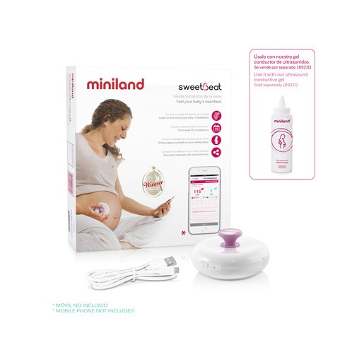 El diseño redondo y compacto de sweetBeat y su reducido tamaño lo hacen muy cómodo y fácil de utilizar para las mamás. Además cuenta con batería recargable mediante cable microUSB.